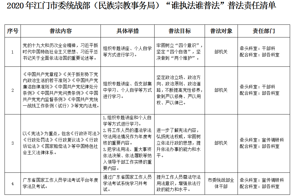 《2020年江门市委统战部(民族宗教事务局)谁执法谁普法普法责任清单》_通知公告_江门市民族宗教事务局