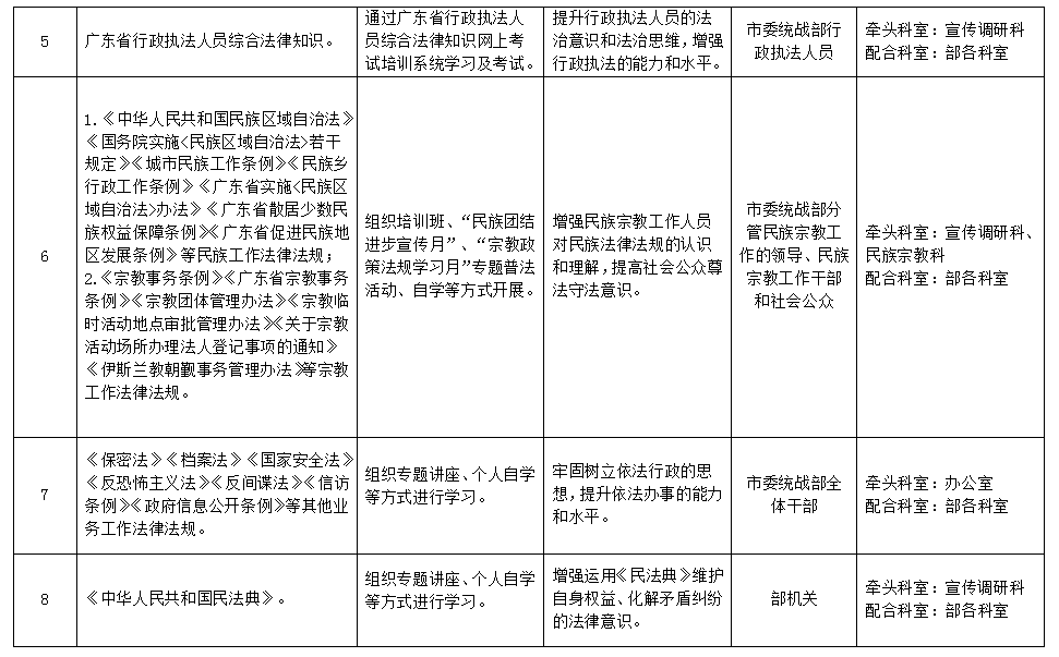《2020年江门市委统战部(民族宗教事务局)谁执法谁普法普法责任清单》
