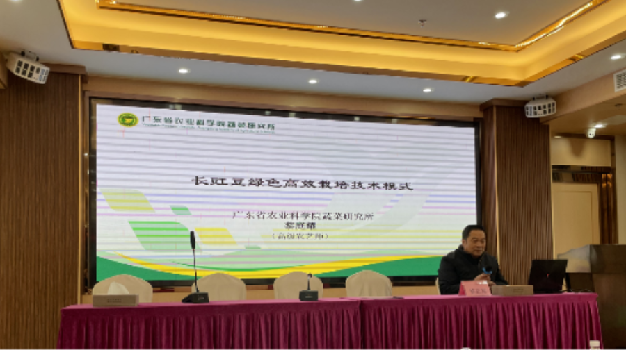 随后黎庭耀同志开展题为“长豇豆绿色高效栽培技术模式”的授课,他对豇豆病虫害绿色防控技术作了详细介绍,并指导参训人员结合“预防为主,综合防治”的原则,向豇豆种植户推广使用农业防治、生物防治和理化诱控等绿色防控措施,确保豇豆产品质量安全。