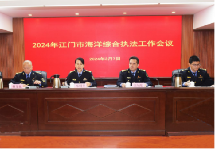 新会、台山、恩平海洋综合执法大队作交流发言。市农业农村局、自然资源局、生态环境局、江门海警局相关负责同志,市海洋综合执法支队班子成员、各科室负责同志,各县(市、区)农业农村部门、台山流渔办相关负责同志,以及各海洋综合执法大队班子成员、办公室负责同志参会。