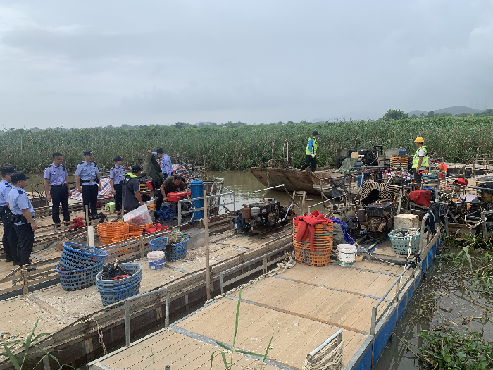 行动期间,江门支队集中力量对“群众举报、检查发现、上级交办”线索开展调查分析,采取无人机侦查、执法船镇守、执法艇突击等方式,对案件高发以及投诉热点海域进行全方位执法检查,对违反休渔规定行为展开打击。其中5月23日凌晨,执法人员在汶村、北陡等上货黑点当场查获涉嫌违反休渔制度的乡镇自用船1艘、渔获物150公斤;下午在川岛周边海域查获涉嫌违反休渔制度的渔船1艘,查扣涉渔“三无”船舶3艘;当天还联合公安打私部门在都斛一带海域查扣疑似运蚝“三无”船舶12艘。5月25日傍晚,执法人员在川岛附近海域查扣涉渔“三无”船舶1艘。