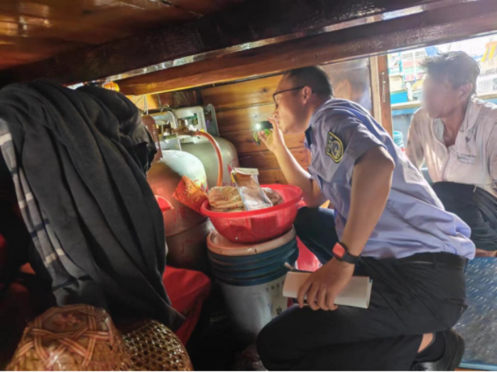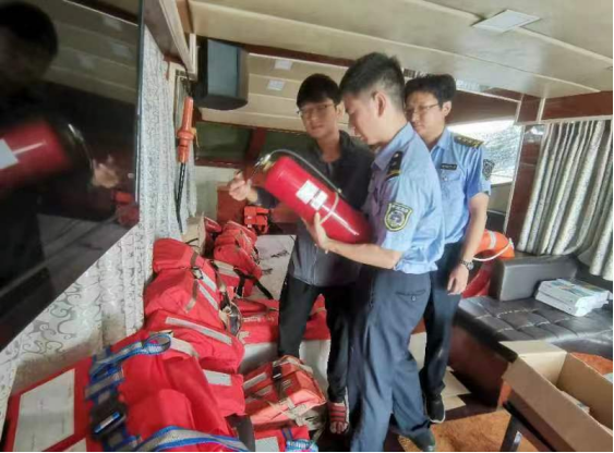 7月17日,市海洋综合执法支队组织台山大队,对广海渔港内停泊渔船进行登船检查,检查内容包括救生消防设施和通导设备是否有效,船上是否存在安全隐患等。