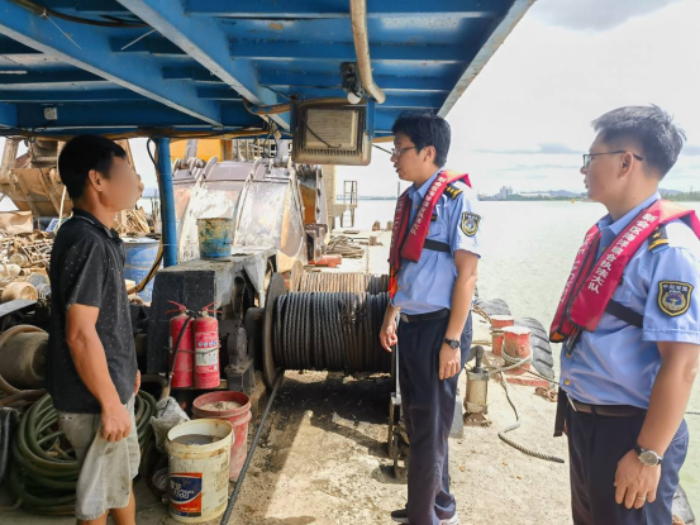 7月11日,市海洋综合执法支队派员到台山市广海镇开展钓具渔船安全检查工作。