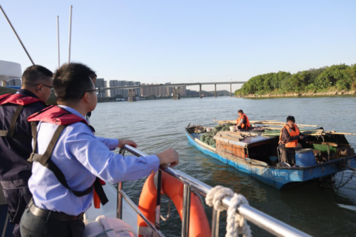 11月27日下午,市海洋综合执法支队组织开展“亮剑2024”专项执法行动,对辖区西江水域进行巡查。