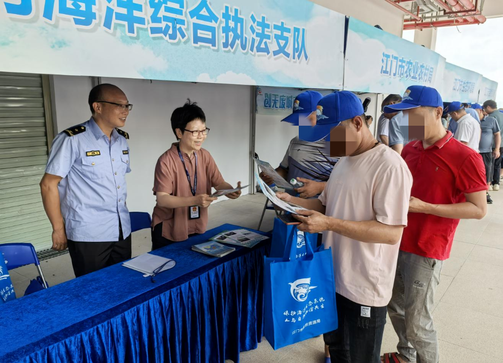 6月12日,市海洋综合执法支队海洋执法科到台山市广海镇参加市自然资源局举办的2025年世界海洋日暨全国海洋宣传日活动。期间,向群众派发宣传单张,宣讲用海政策和法律法规。