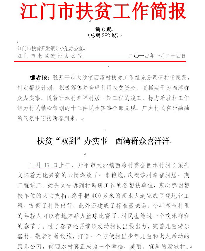2014年江门市扶贫工作简报第6期(总第282期)_工作简报_江门市农业农村局