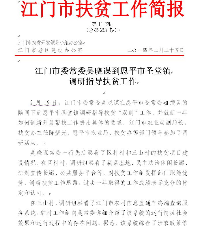 2014年江门市扶贫工作简报第11期(总第287期)_工作简报_江门市农业农村局