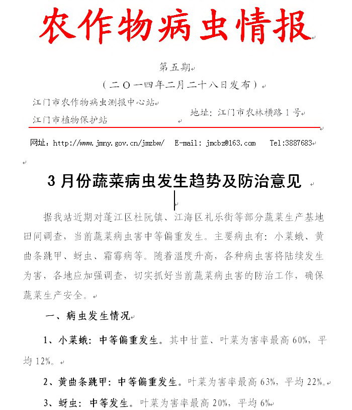 3月份蔬菜病虫发生趋势及防治意见(农作物病虫情报第五期)_工作简报_江门市农业农村局