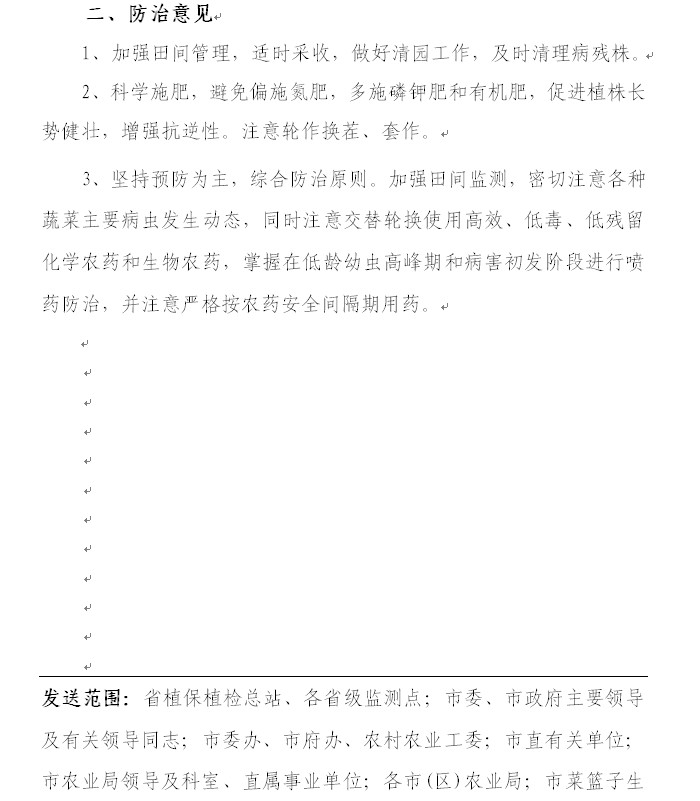 3月份蔬菜病虫发生趋势及防治意见(农作物病虫情报第五期)