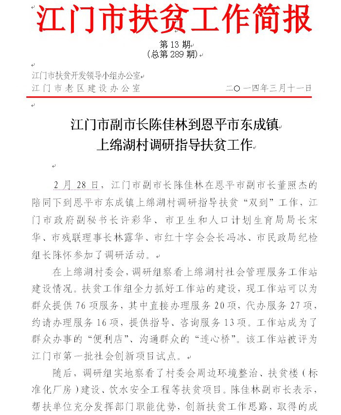 2014年江门市扶贫工作简报第13期(总第289期)_工作简报_江门市农业农村局