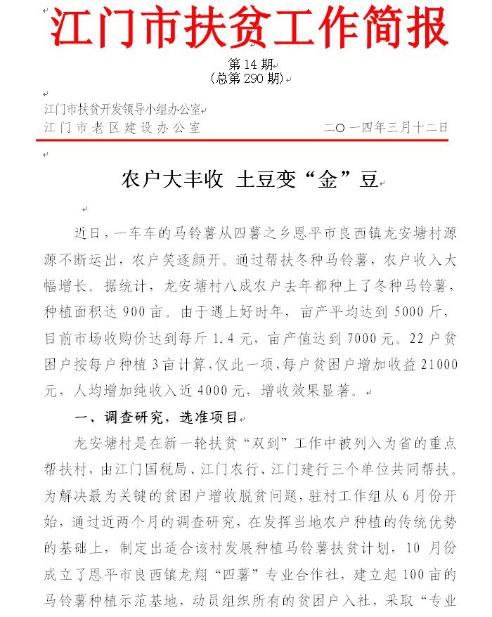 2014年江门市扶贫工作简报第14期(总第290期)_工作简报_江门市农业农村局