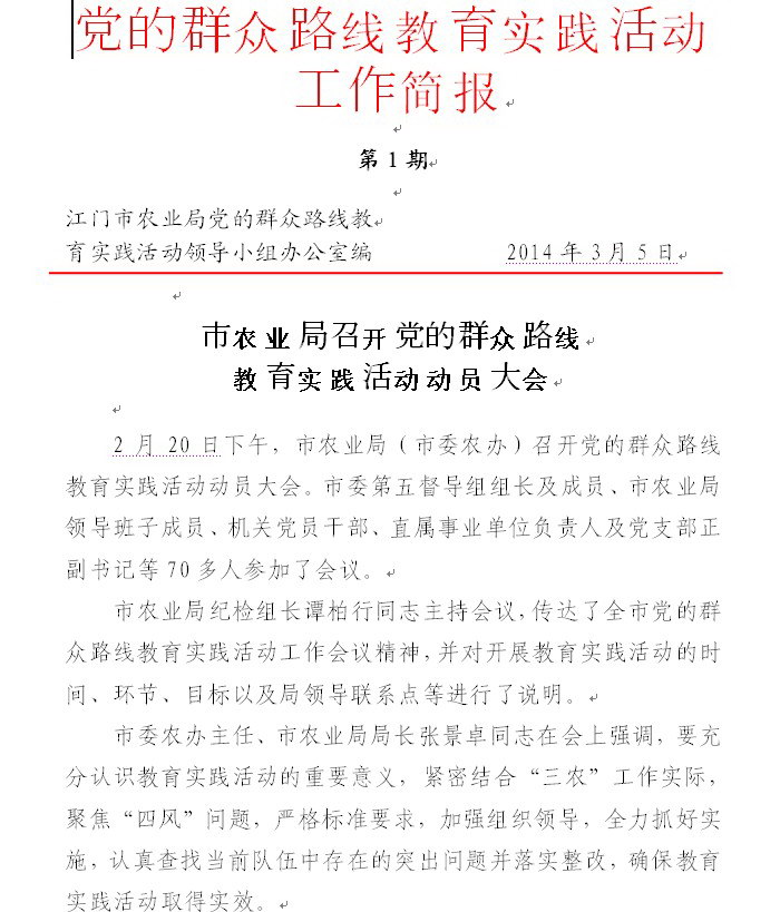 党的群众路线教育实践活动工作简报(第1期)_工作简报_江门市农业农村局