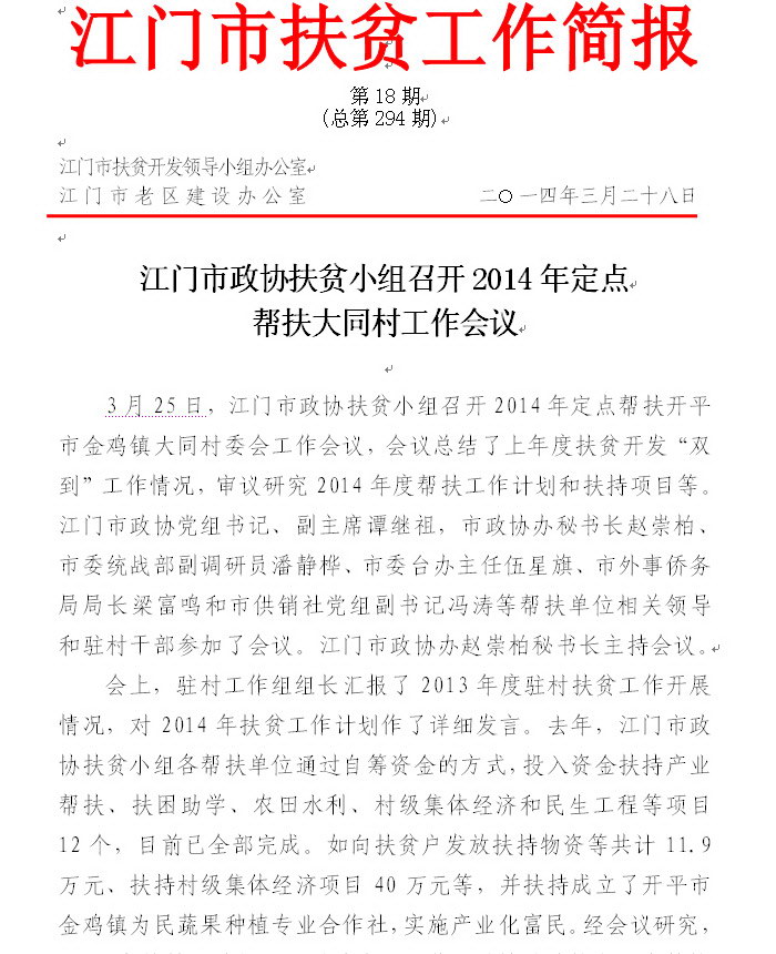 2014年江门市扶贫工作简报第18期(总第294期)_工作简报_江门市农业农村局