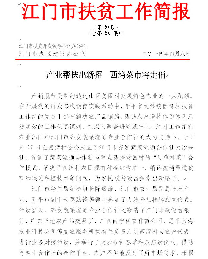 2014年江门市扶贫工作简报第20期(总第296期)_工作简报_江门市农业农村局