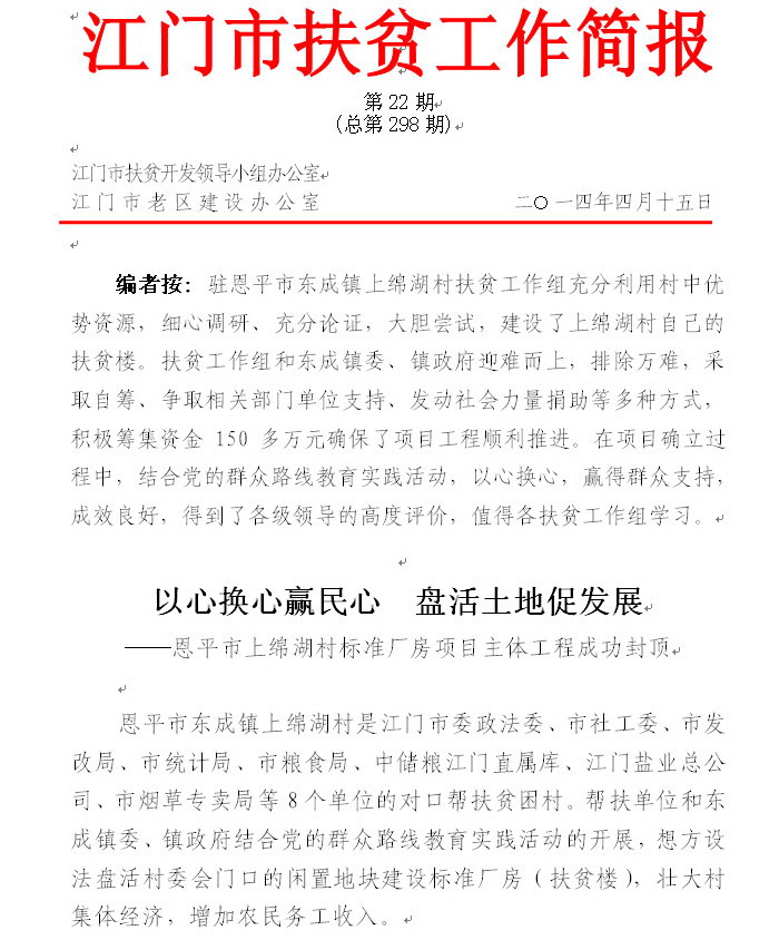 2014年江门市扶贫工作简报第22期(总第298期)_工作简报_江门市农业农村局