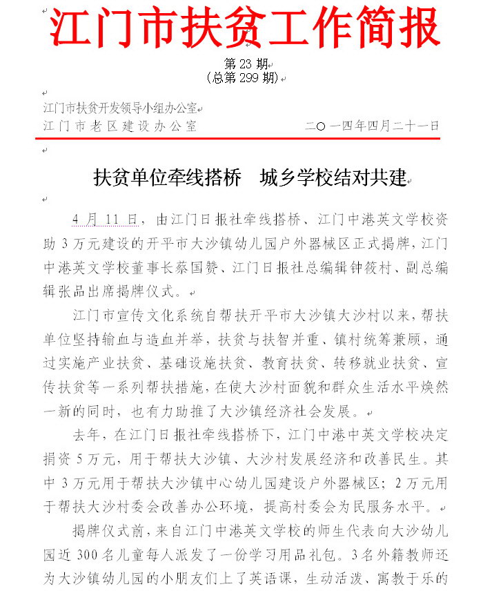 2014年江门市扶贫工作简报第23期(总第299期)_工作简报_江门市农业农村局
