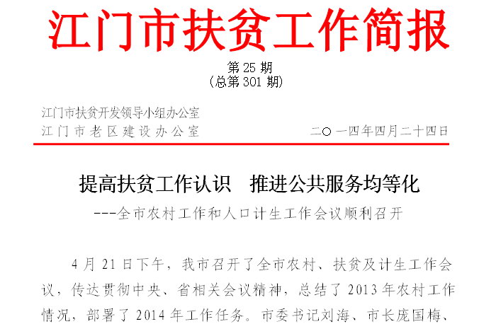 2014年江门市扶贫工作简报第25期(总第301期)_工作简报_江门市农业农村局