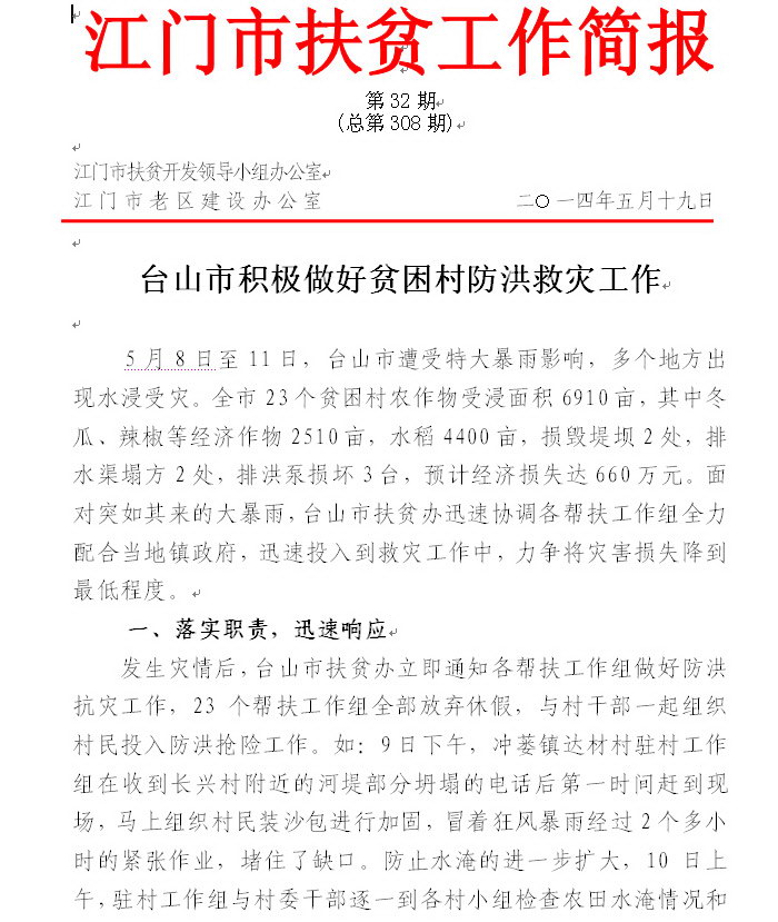 2014年江门市扶贫工作简报第32期(总第308期)_工作简报_江门市农业农村局