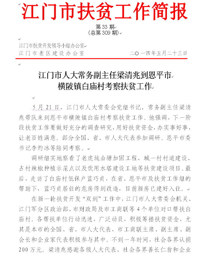 2014年江门市扶贫工作简报第33期(总第309期)_工作简报_江门市农业农村局