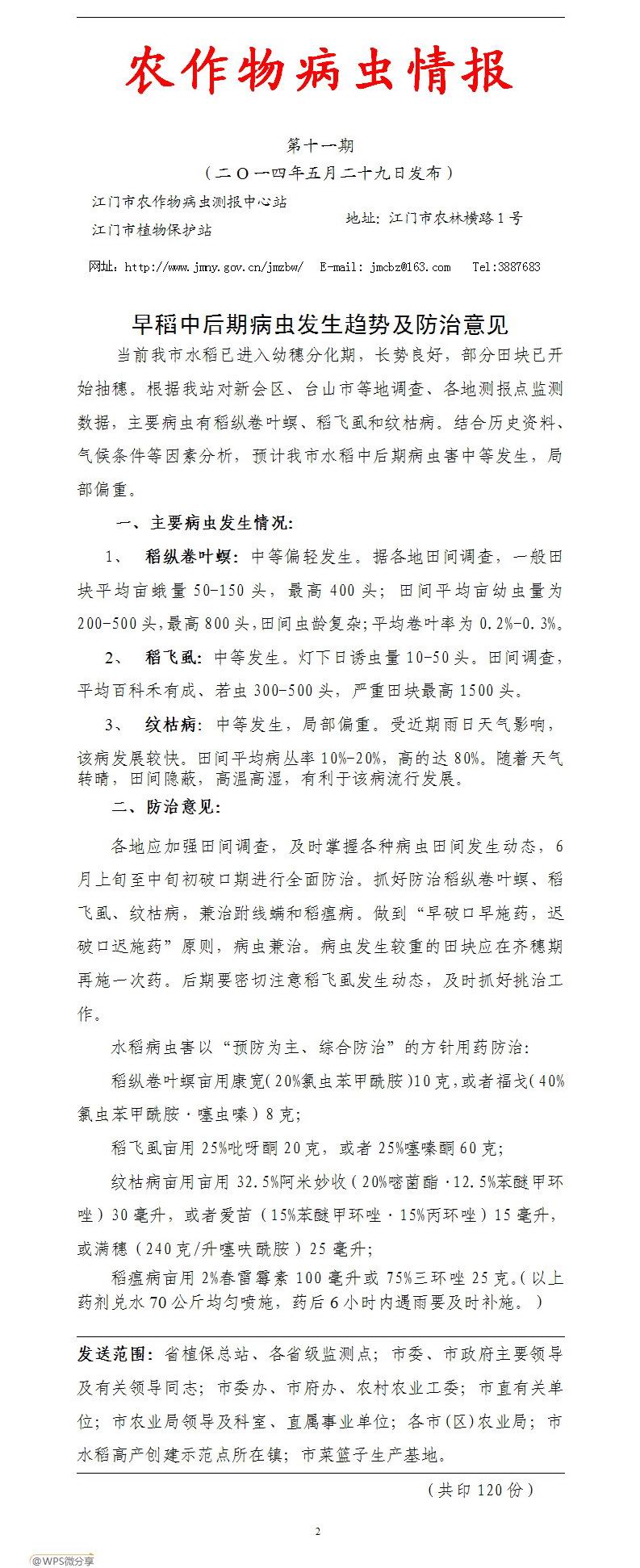 2014年农作物病虫情报第十一期(早稻中后期病虫发生趋势及防治意见)_工作简报_江门市农业农村局