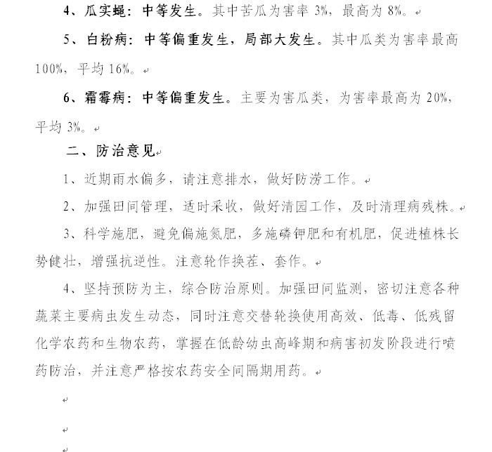 (7月份蔬菜病虫发生趋势及防治意见 )