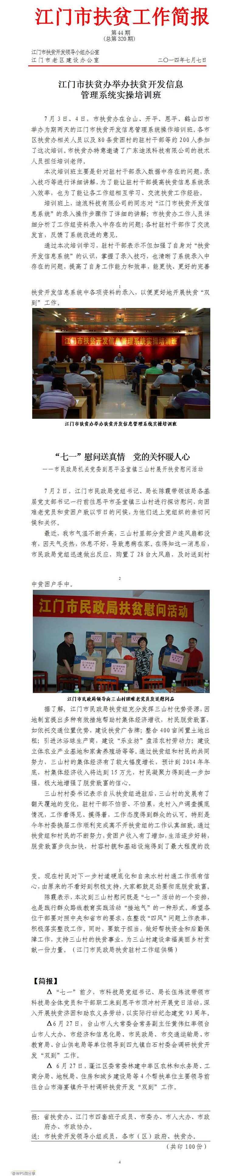 2014年江门市扶贫工作简报第44期(总第320期)_工作简报_江门市农业农村局