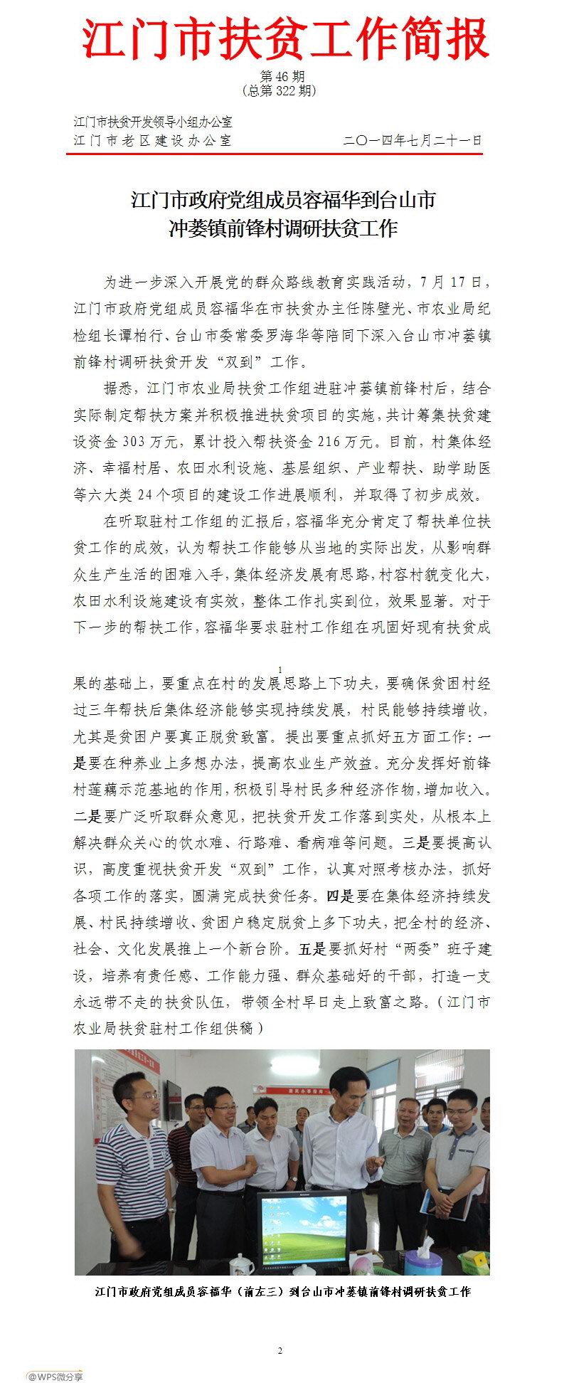 2014年江门市扶贫工作简报第46期(总第322期)_工作简报_江门市农业农村局
