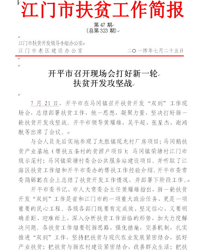 2014年江门市扶贫工作简报第47期(总第323期)_工作简报_江门市农业农村局