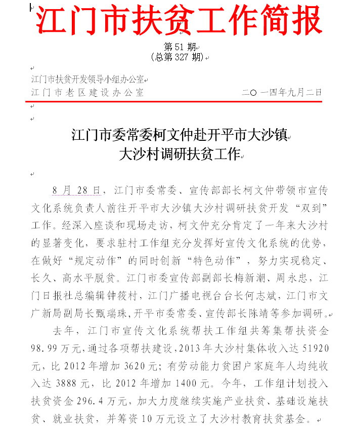 2014年江门市扶贫工作简报第51期(总第327期)_工作简报_江门市农业农村局