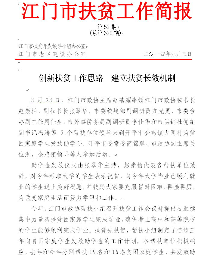 2014年江门市扶贫工作简报第52期(总第328期)_工作简报_江门市农业农村局