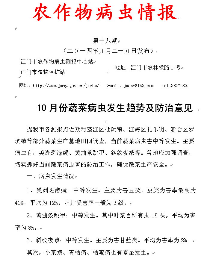 2014年农作物病虫情报第十八期(10月份蔬菜病虫发生趋势及防治意见)_工作简报_江门市农业农村局