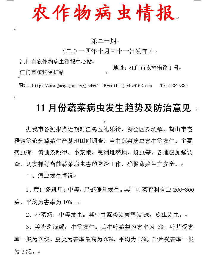 2014年农作物病虫情报第二十期(11月份蔬菜病虫发生趋势及防治意见)_工作简报_江门市农业农村局