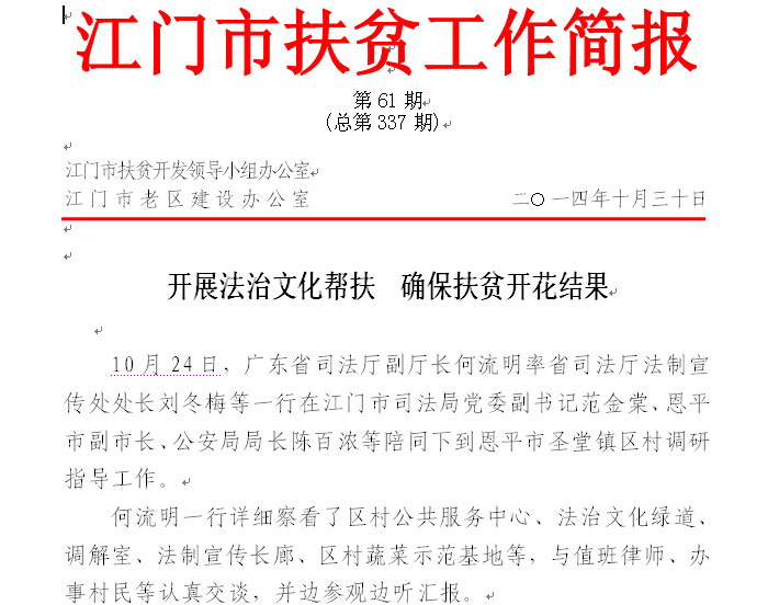 2014年江门市扶贫工作简报第61期(总第337期)_工作简报_江门市农业农村局