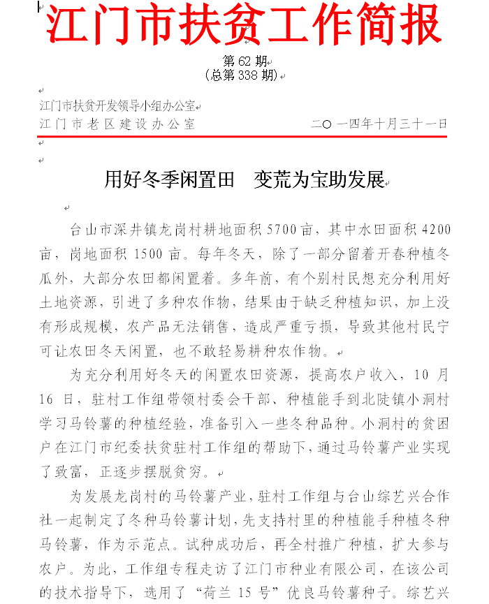 2014年江门市扶贫工作简报第62期(总第338期)_工作简报_江门市农业农村局