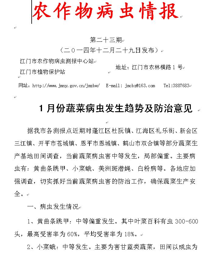 农作物病虫情报第二十三期(1月份蔬菜病虫发生趋势及防治意见)_工作简报_江门市农业农村局