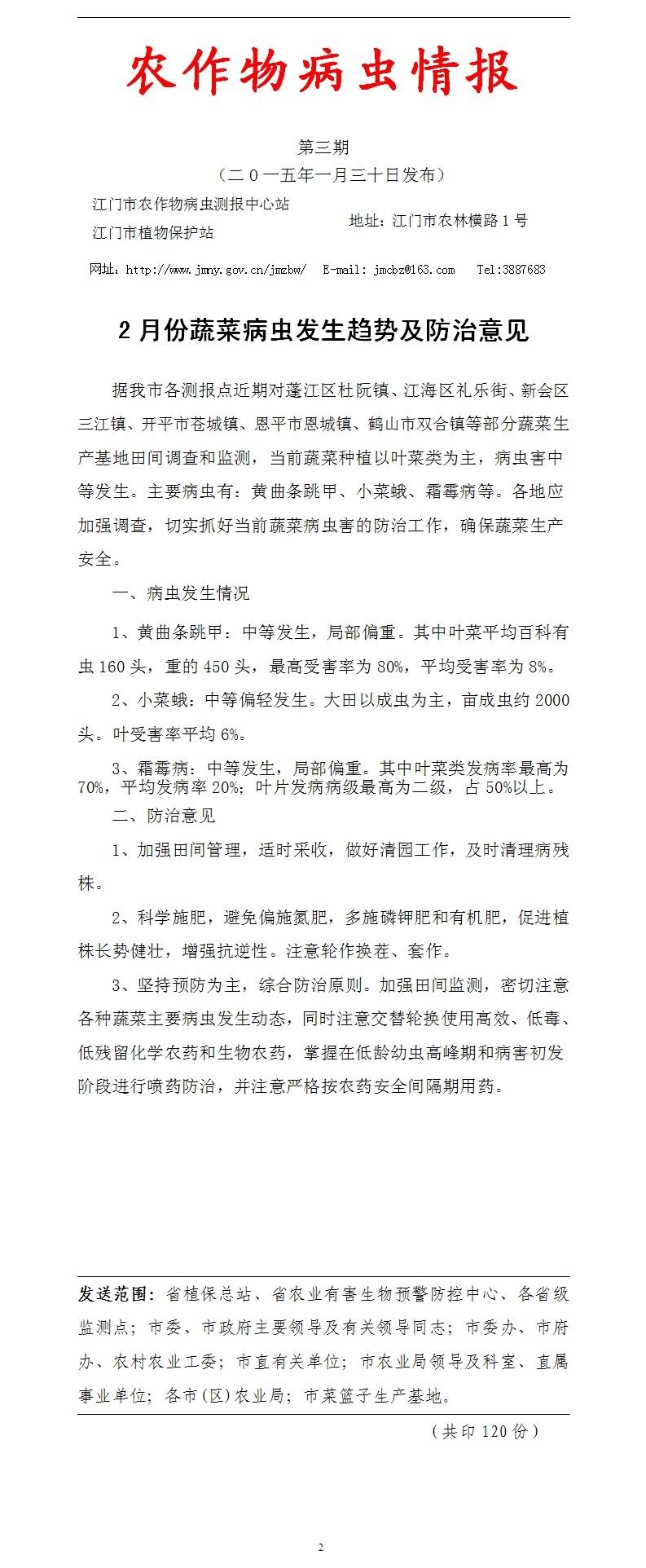 2015年农作物病虫情报第三期(2月份蔬菜病虫发生趋势及防治意见)_工作简报_江门市农业农村局