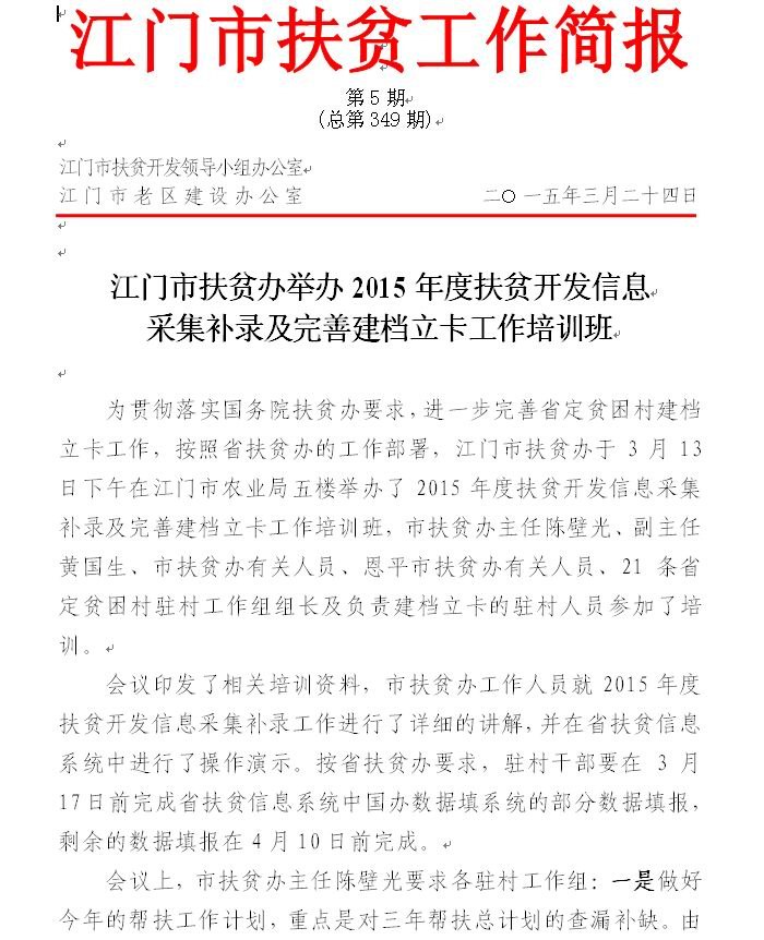 2015年江门市扶贫工作简报第5期(总第349期)_工作简报_江门市农业农村局