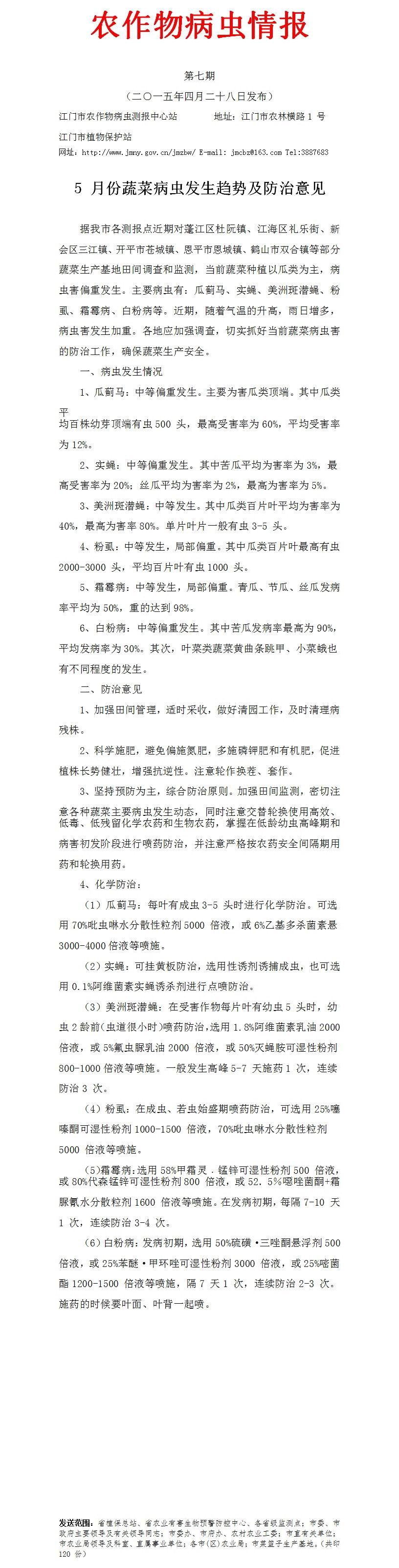2015年农作物病虫情报第七期(5月份蔬菜病虫发生趋势及防治意见)_工作简报_江门市农业农村局