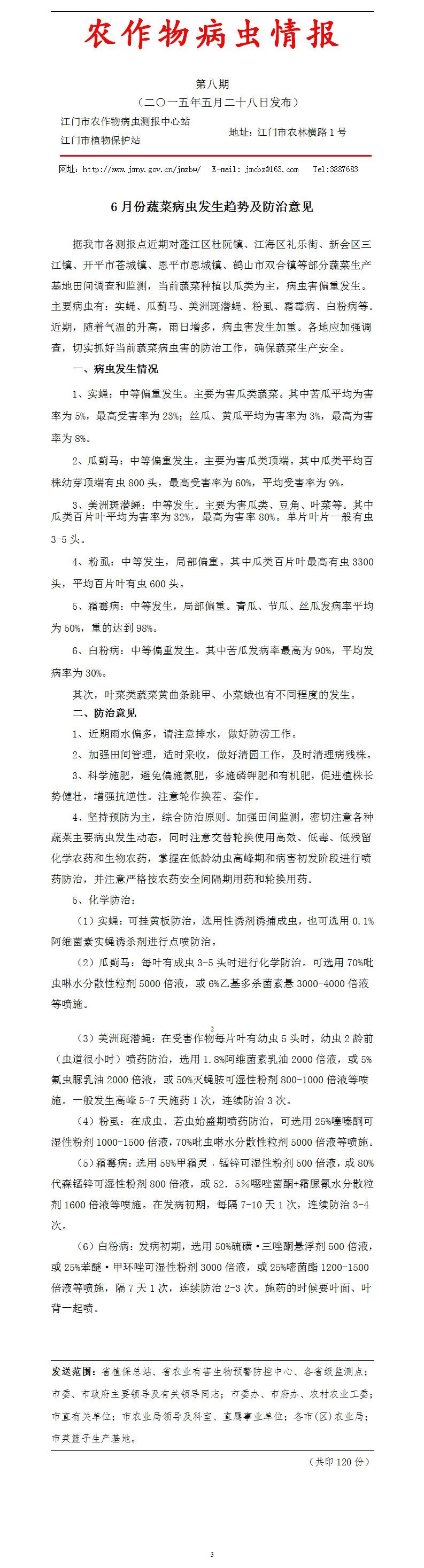 2015年农作物病虫情报第八期(6月份蔬菜病虫发生趋势及防治意见)_工作简报_江门市农业农村局