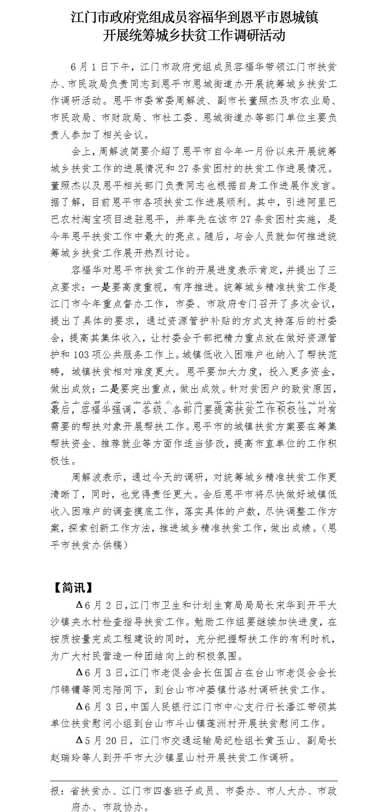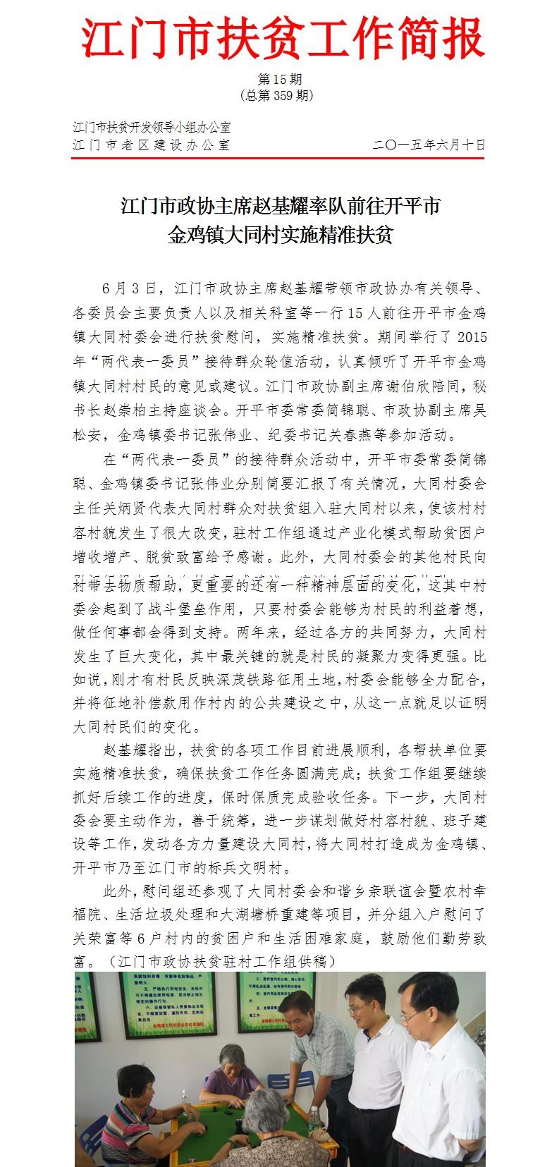 2015年江门市扶贫工作简报第15期(总第359期)_工作简报_江门市农业农村局