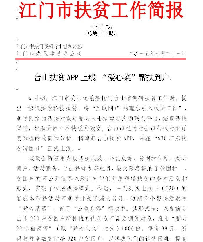 2015年江门市扶贫工作简报第20期(总第364期)_工作简报_江门市农业农村局