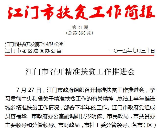 2015年江门市扶贫工作简报第21期(总第365期)_工作简报_江门市农业农村局