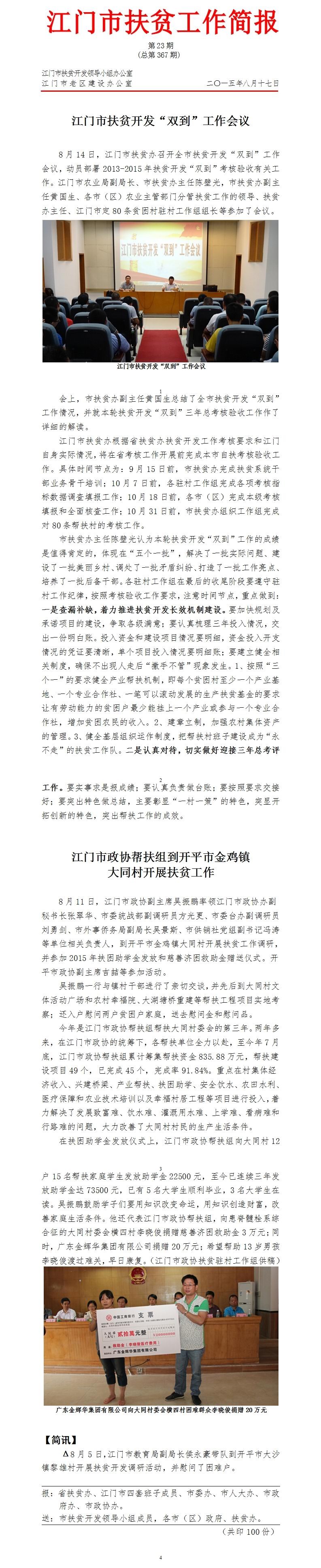 2015年江门市扶贫工作简报第23期(总第367期)_工作简报_江门市农业农村局