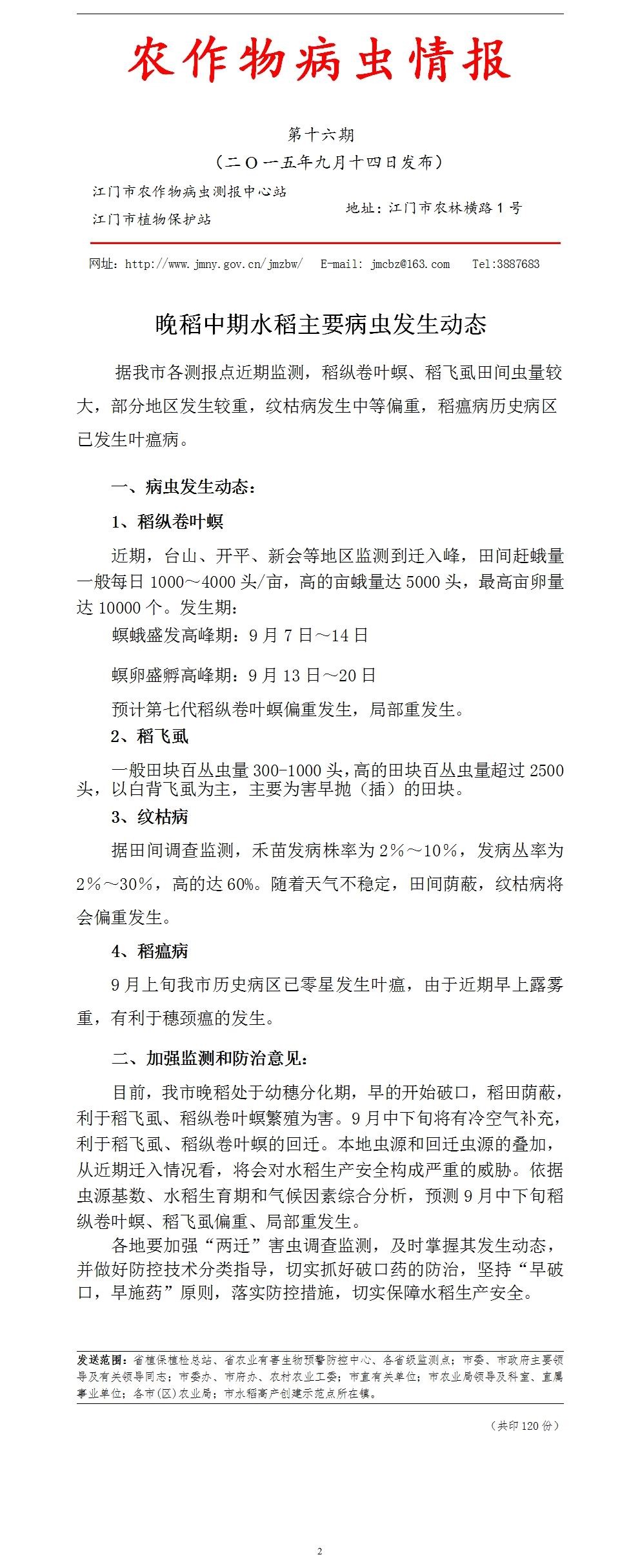 2015年农作物病虫情报第十六期(晚稻中期水稻主要病虫发生动态)_工作简报_江门市农业农村局