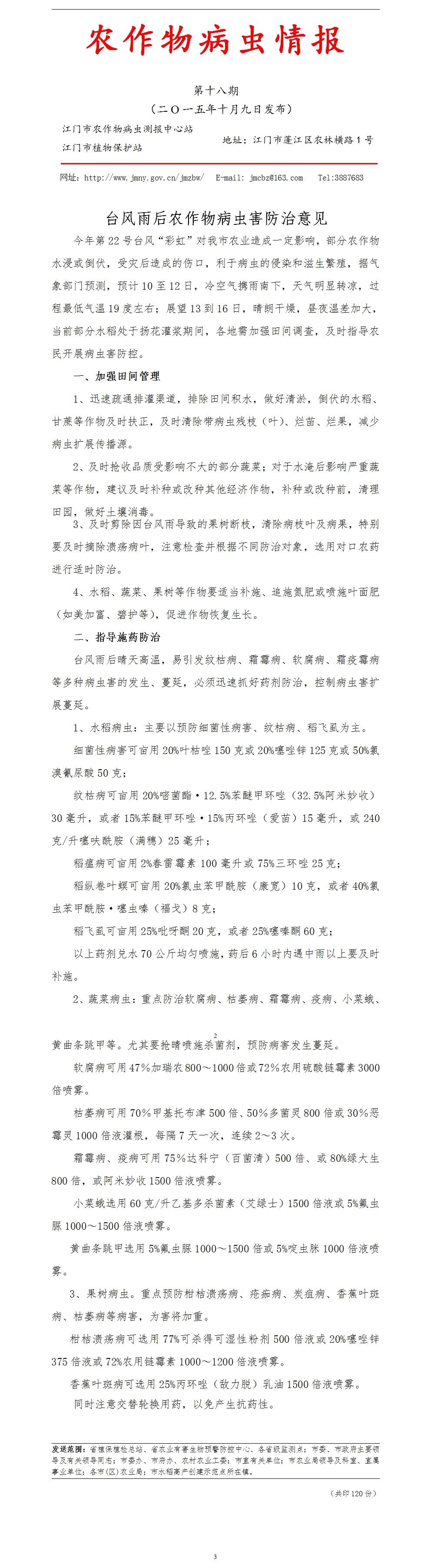 2015年农作物病虫情报第十八期(台风雨后农作物病虫害防治意见)_工作简报_江门市农业农村局