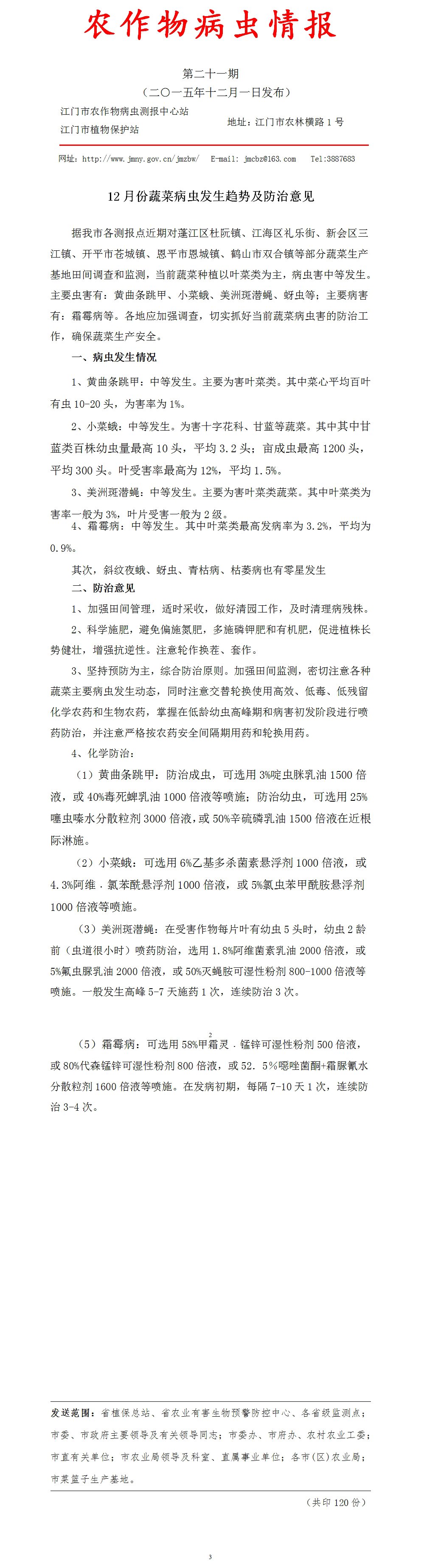 2015年农作物病虫情报第二十一期(12月份蔬菜病虫发生趋势及防治意见)_工作简报_江门市农业农村局