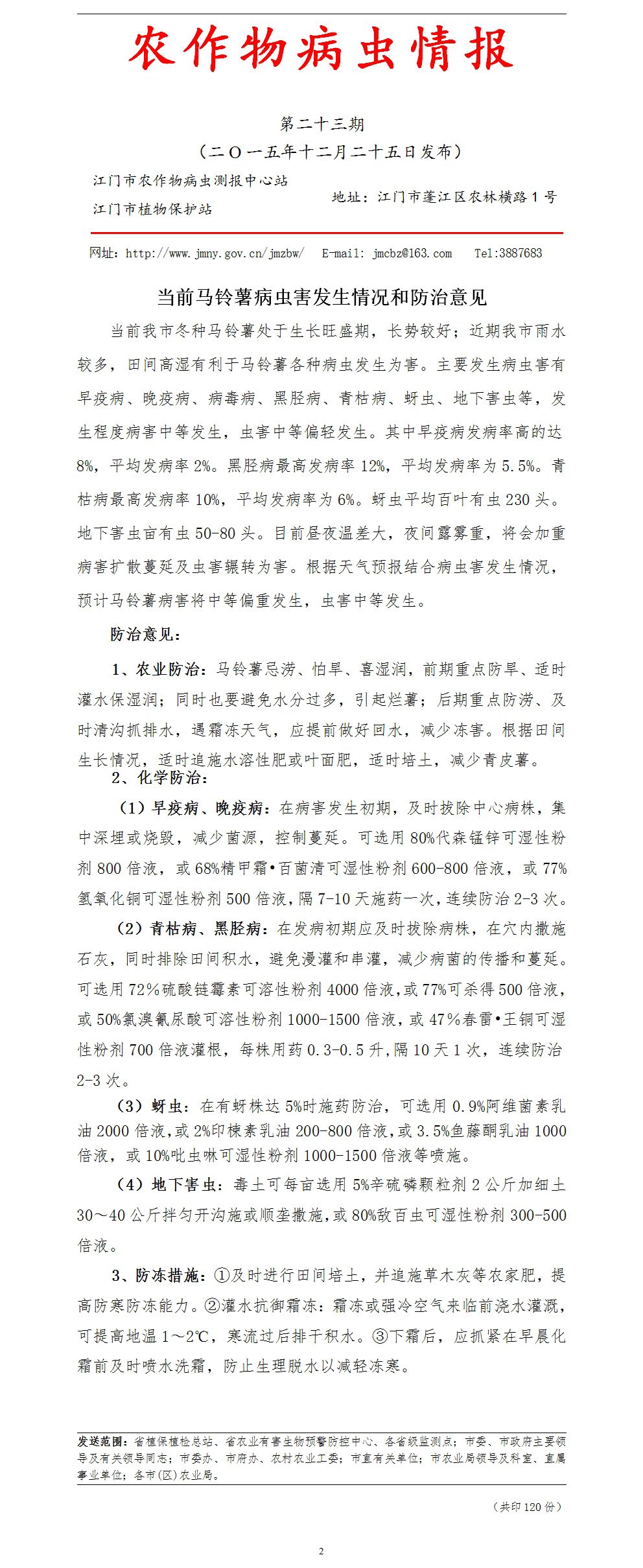 2015年农作物病虫情报第二十三期(当前马铃薯病虫害发生情况和防治意见)_工作简报_江门市农业农村局