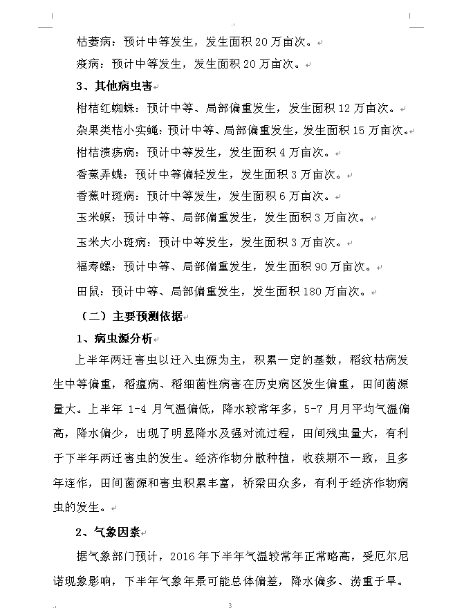 (2016年下半年农作物病虫发生趋势预测)