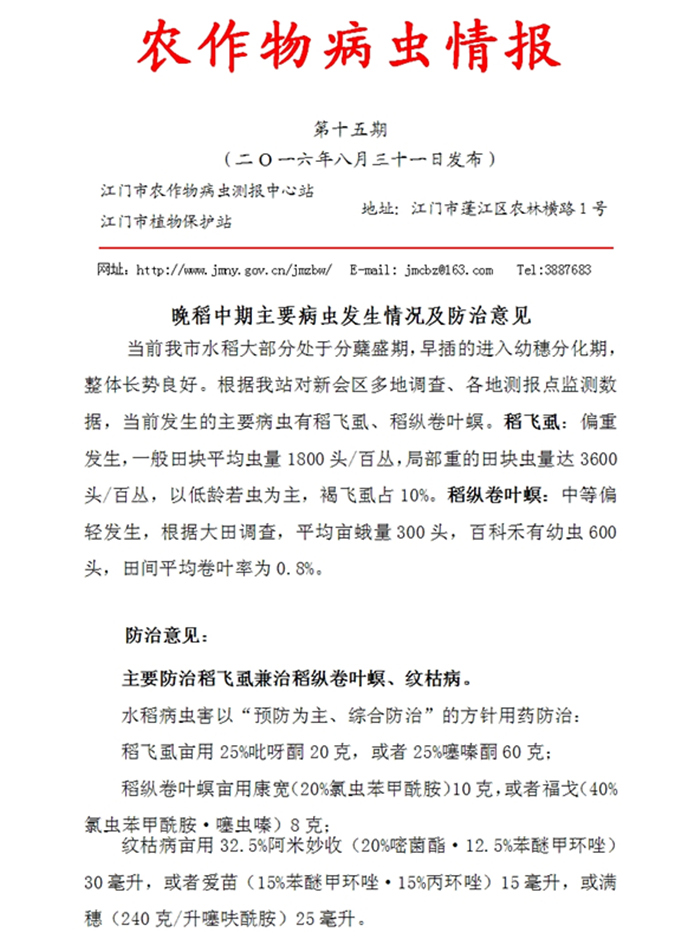 2016年农作物病虫情报 第十五期(晚稻中期主要病虫发生情况及防治意见)_工作简报_江门市农业农村局
