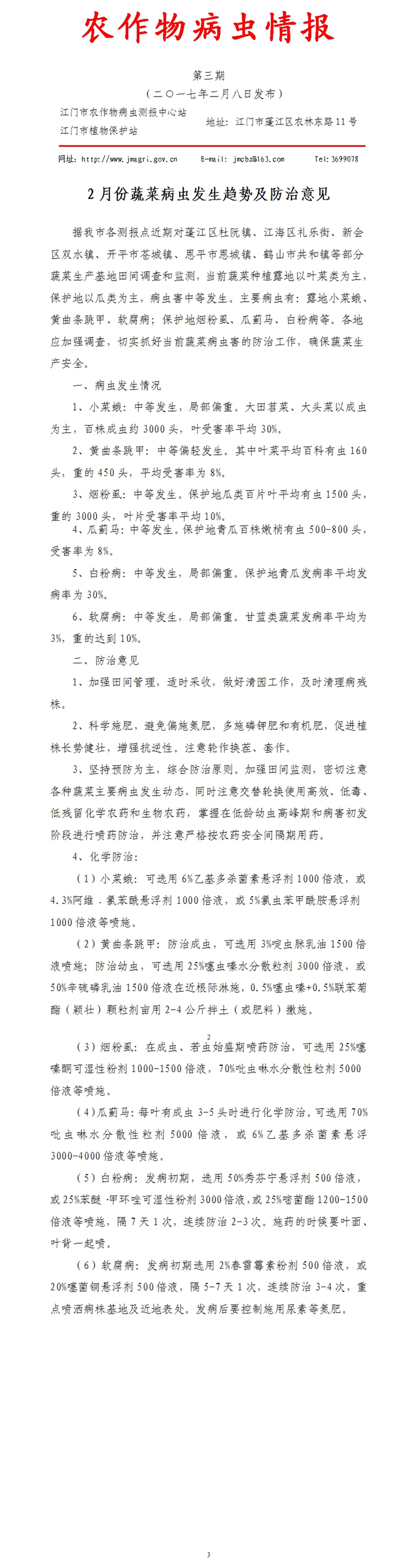 2017年农作物病虫情报 第三期(2月份蔬菜病虫发生趋势及防治意见)_工作简报_江门市农业农村局